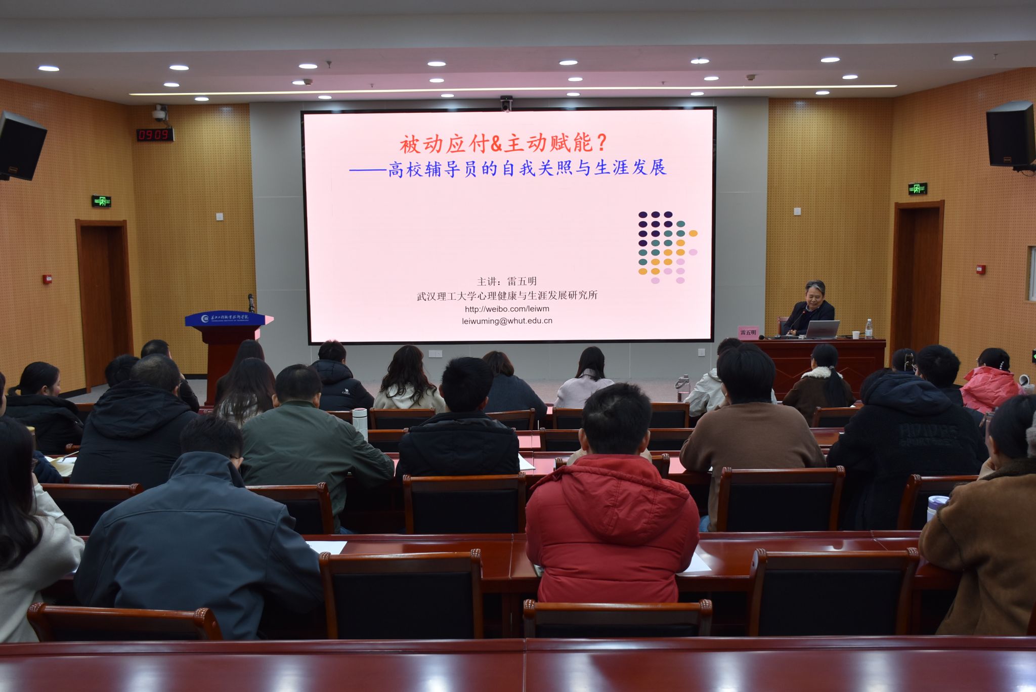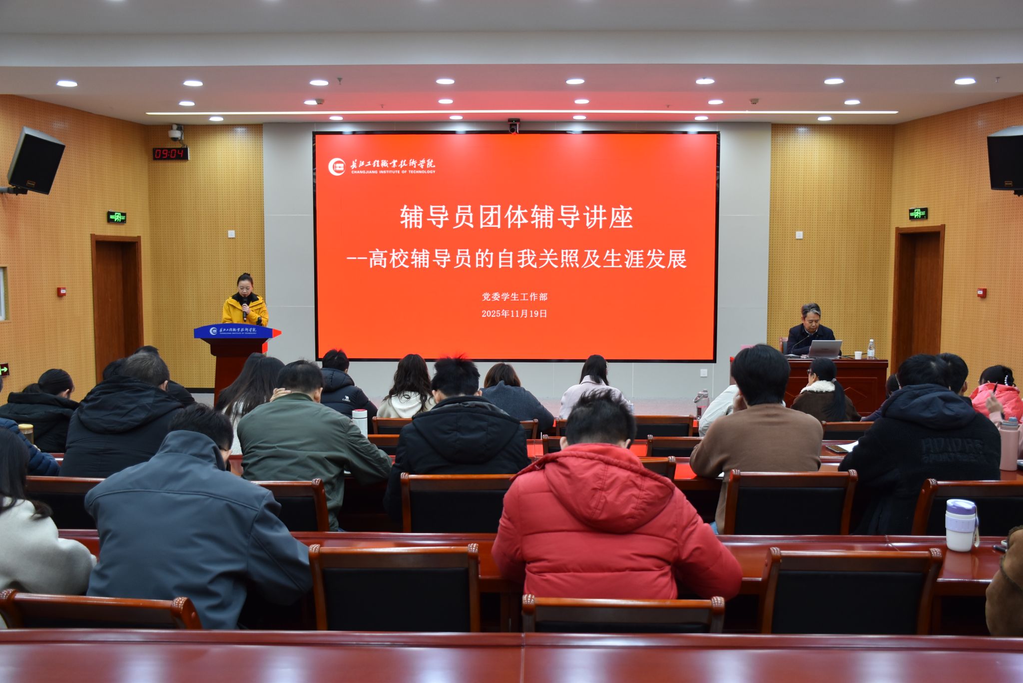 为切实提升辅导员队伍的心理调适能力与职业发展意识,助力辅导员在高强度工作中实现自我关照与专业成长,11月19日上午,学校在长江楼惟勤厅成功举办题为《是“被动应对”还是“主动赋能”——高校辅导员的自我关照及生涯发展》的专题讲座。全体专兼职辅导员齐聚一堂,共同参与这场兼具理论深度与实践温度的职业赋能活动。