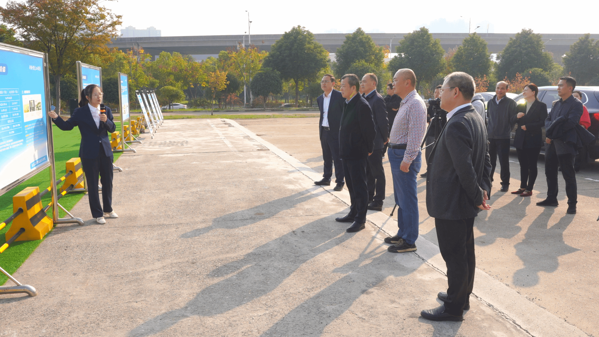观摩团第二站来到了学校北斗卫星基准站,石娟娟老师介绍说:该基准站由学校自主建设,除为校内区域提供差分数据外,同时为学校周边地理信息企业和相关北斗终端提供数据服务。更为重要的是,基准站的建设和运维为培养测绘地理信息专业群学生在掌握北斗定位原理、学习基站安装调试、使用终端数据进行地理信息数据采集等方面提供有力支撑。
