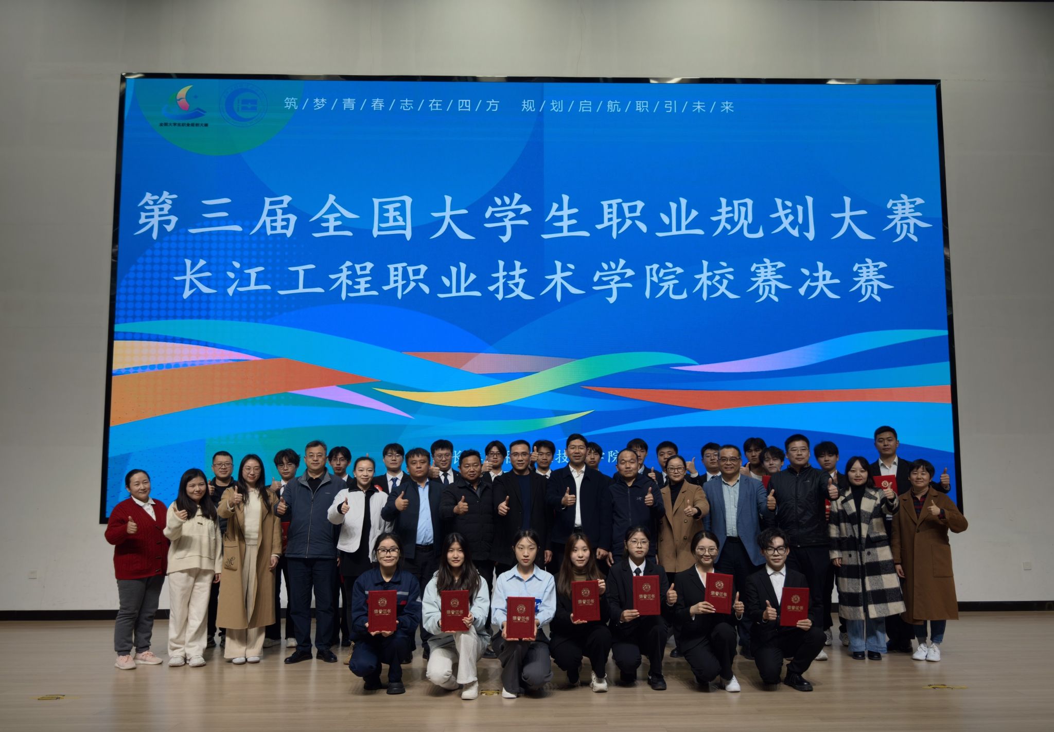 赛事选拔阶段,招生与就业指导处联合各学院,通过线上线下相结合的方式广泛宣传,详细解读大赛规则和职业规划的重要性,激发了6000余名同学积极参与。经过班级选拔赛、学院初赛以及校级复赛的激烈角逐,共有24名选手(成长赛道15名,就业赛道9名)脱颖而出,成功晋级校级决赛。这些选手涵盖了学院多个专业,他们带着对未来职业的憧憬与规划,齐聚决赛现场,展开了一场精彩纷呈的巅峰对决。