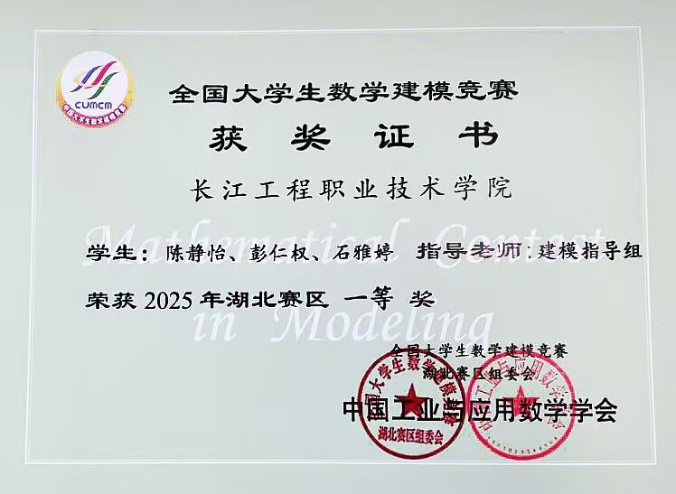 近日,由教育部高教司和中国工业与应用数学学会举办的全国大学生数学建模竞赛成绩揭晓。由beat365人文素质教育学院数学建模指导组的指导的5支参赛队伍全部获奖,其中陈丹、刘有权老师指导的陈静怡、彭仁权、石雅婷团队,赵成鳌、易同贸老师指导的孙祉盈、丁晨曦、宋佳淇团队均荣获省级一等奖。徐文浩、郭文婷老师指导的黄应光、付雨洋、杜俊德团队荣获省级二等奖。陈婷、李华老师指导的祝吉贝、张小美、黄创团队,花威、朱媛媛老师指导的刘宇轩、罗浩、余杨靖团队荣获省级三等奖。参赛队伍获奖率高达100%,该成绩在获奖数量上再一次刷新beat365在该项赛事的纪录。