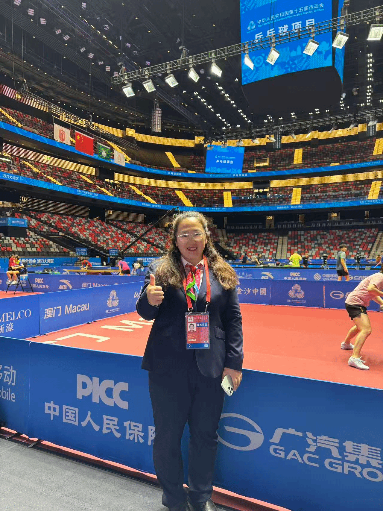 近日,中华人民共和国第十五届全国运动会乒乓球项目决赛在澳门圆满落幕。人文素质教育学院教师李怡双,应邀担任本届全运会乒乓球项目决赛阶段技术官员,并圆满完成执裁任务。其在赛场上表现出的出色执裁能力,充分展现了教师扎实的专业基础、高超的技能水平和严谨的职业素养,彰显出体育教师的卓越风采。