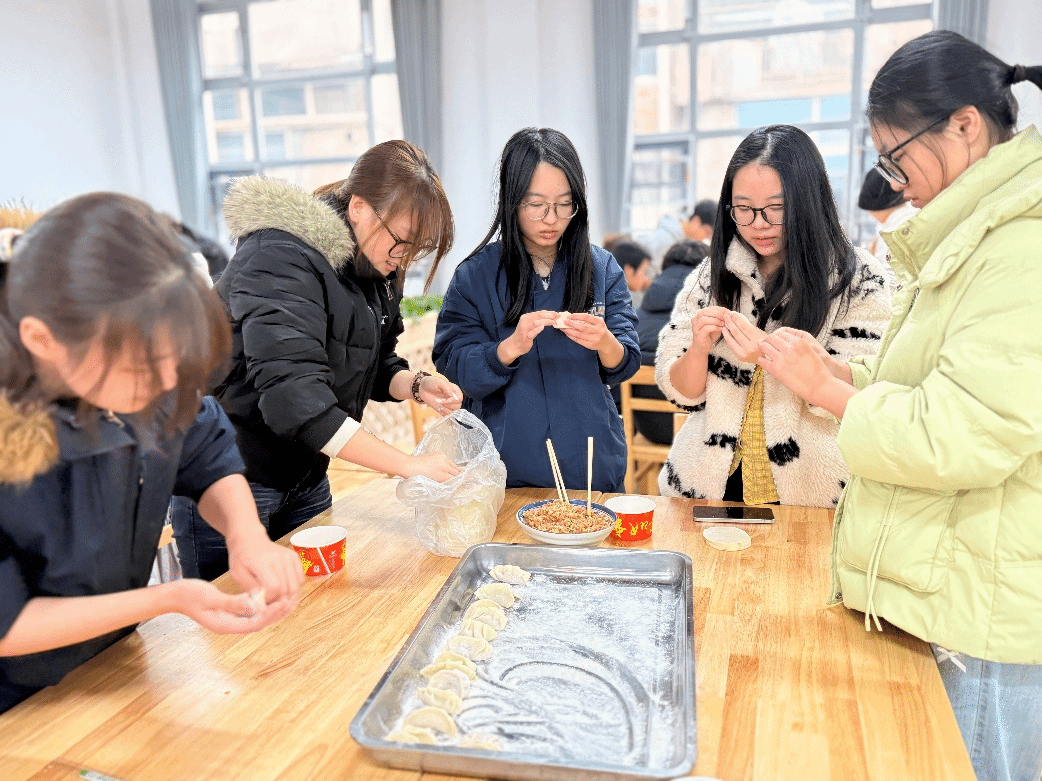 作为校区“五育融合”实践课堂的常规化实践核心项目,本次“匠心家宴”创新融入冬至文化元素,以“包饺子+羊肉火锅”为特色形式,让五育内涵贯穿活动全程。活动现场,师生分工协作擀皮、包馅、捏褶,在动手实践中锤炼劳动技能、强化团队协作,尽显劳育与德育实效;“冬至知多少”快问快答环节围绕节气知识、传统民俗展开,让学生在趣味互动中拓宽学识,深化智育渗透;“最美造型奖”评选引导学生注重饺子形态与摆盘美感,搭配传统家宴礼仪与商务接待礼仪简短培训,让美育与职业素养培育有机结合;协作实操与轻松互动兼顾,既锻炼肢体协调性,又营造愉悦氛围,助力体育素养提升。后厨内,鲜香扑鼻的羊肉火锅咕嘟沸腾,为寒冬增添浓浓暖意。