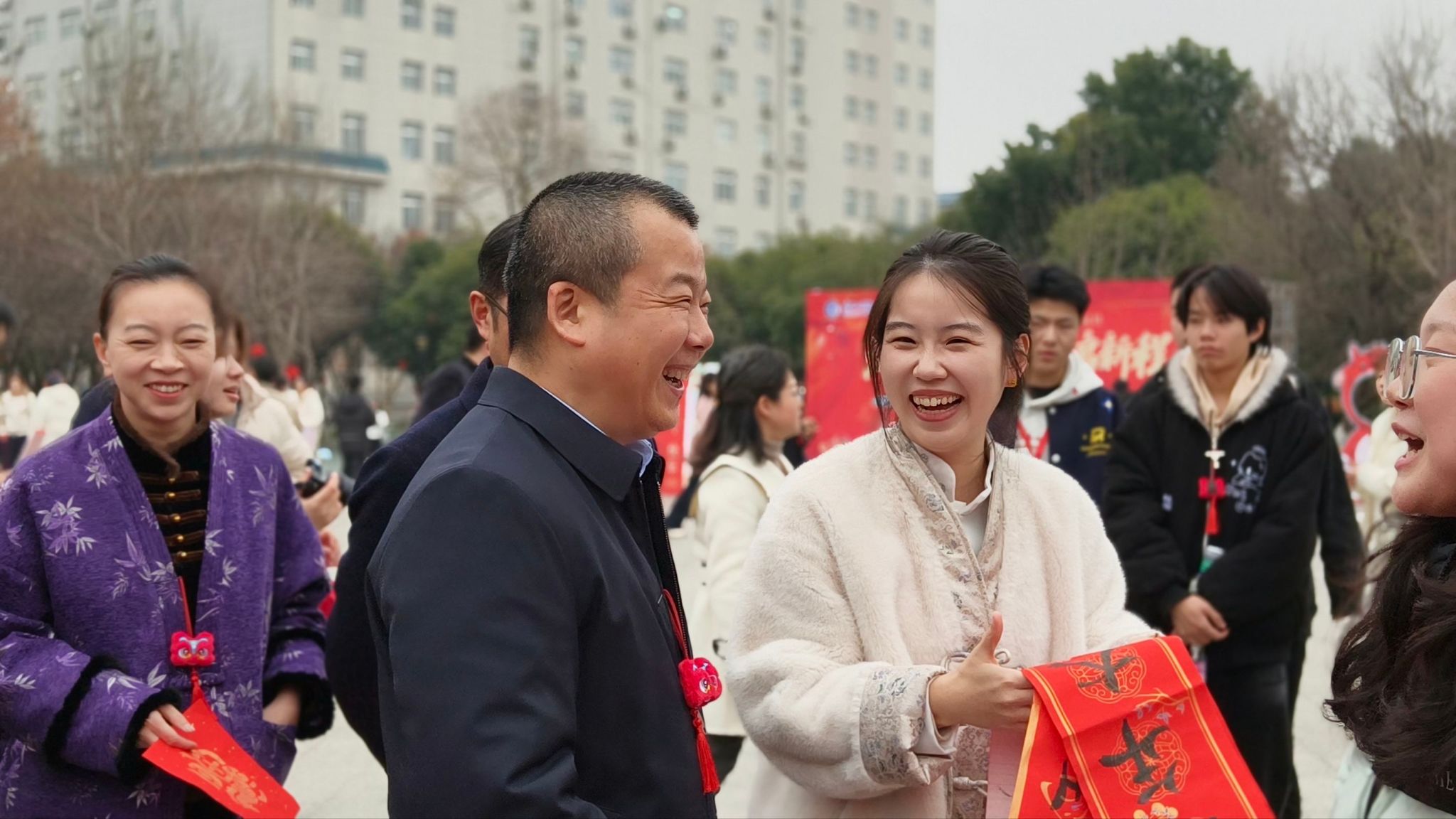 旧岁已展千重锦,新年再进百尺竿。元旦来临之际,数字商贸学院举办“篝火之声——我们的节日”元旦游园会。全体校领导与数字商贸学院全体师生欢聚一堂,赏节目、写春联、拓福字、做糖画,在精彩纷呈的视听盛宴与趣味游戏中同享欢乐时光,共迎崭新一年。