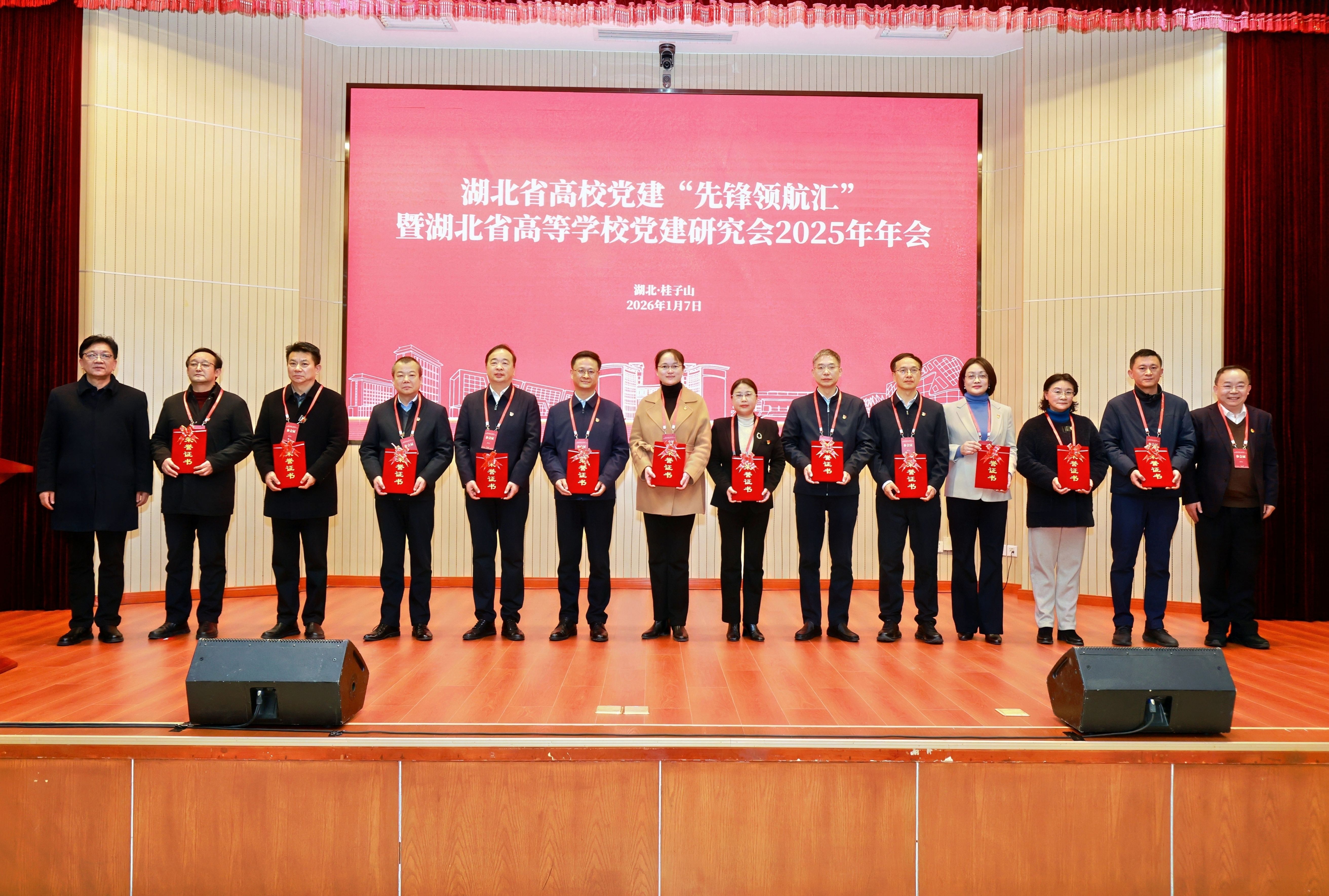 2026年1月7日,湖北省高校党建“先锋领航汇”暨湖北省高等学校党建研究会2025年年会召开。本次会议由湖北省委党建办、湖北省委教育工委单位指导,湖北省高等学校党建研究会主办,华中师范大学承办。学校党委书记马大奎作为获奖单位代表出席会议并领取了奖项。