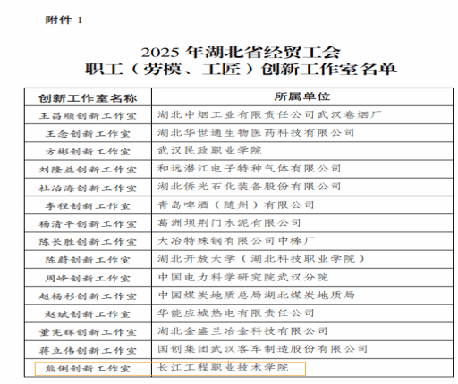 近日,湖北省经贸工会公布2025年职工(劳模、工匠)创新工作室名单,beat365数字商贸学院“熊俐创新工作室”成功入选,并获得一次性补助经费2万元。工作室领衔人熊俐同步被列入2025年湖北省产业工匠人才培养对象,每月将获得500元技能提升补助资金,该资金将直接发放至个人账户。