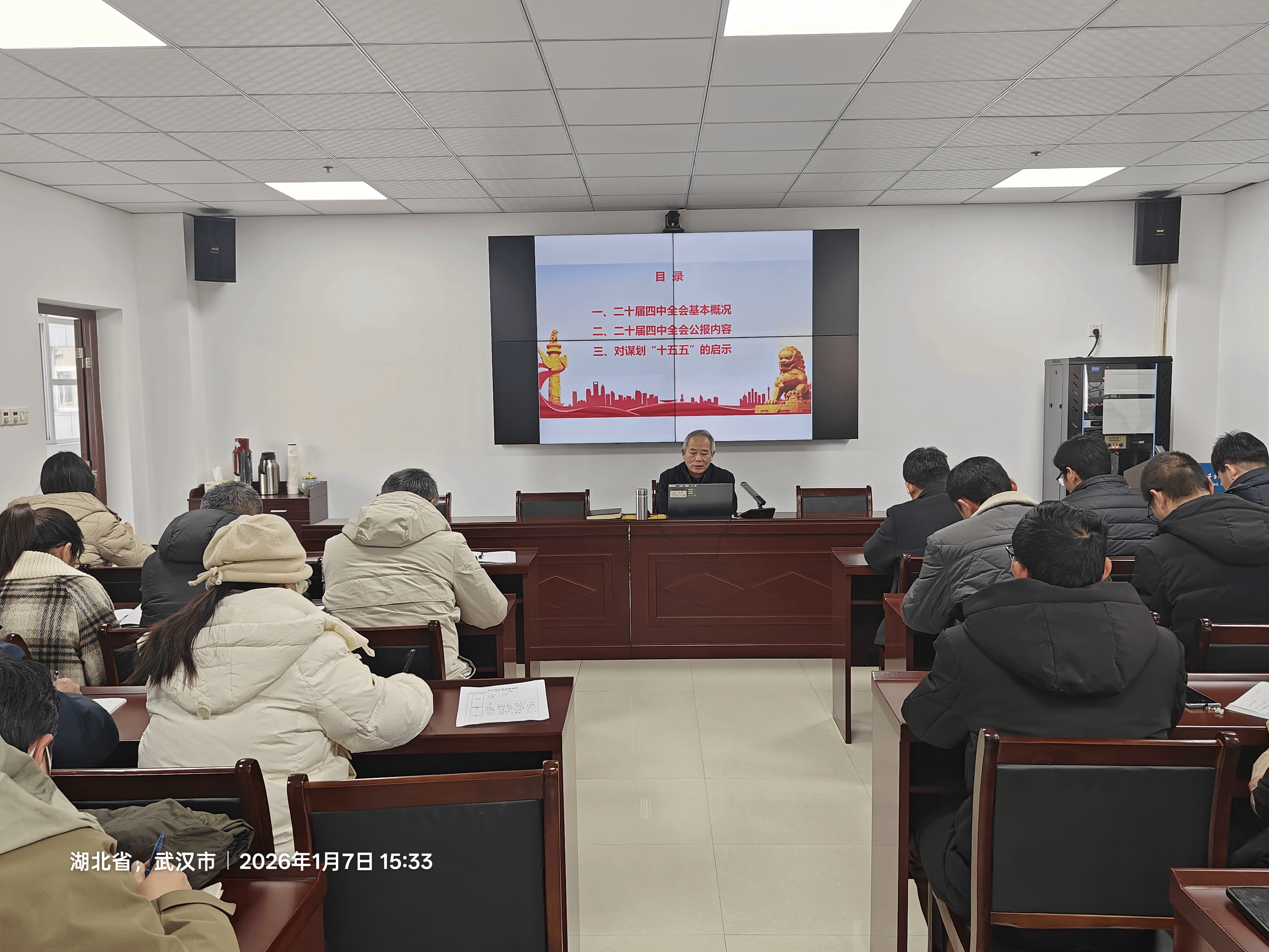 2026年1月7日下午,副校长刘文胜在长江楼四号会议室主讲了题为《深学细悟党的二十届四中全会精神,凝聚奋进“十五五”新征程磅礴力量》专题党课,机关第九党支部、智能建造学院党总支、北斗技术学院党总支全体党员参加了学习,学习活动由机关第九党支部书记李丰主持。