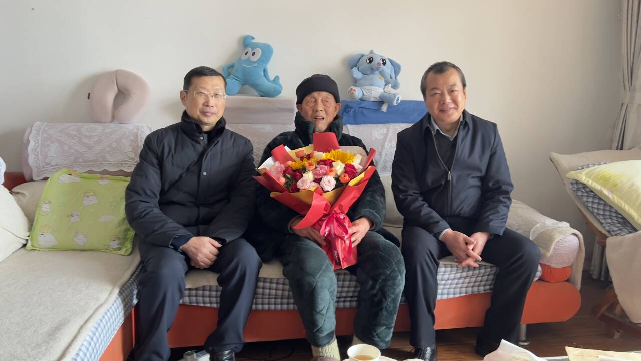 寒冬送暖情系桑榆,新春慰问共话发展。2月7日,学校党委书记马大奎,党委委员、党委组织人事部部长李华农一行登门看望91岁的吴治国、89岁的谢德荣两位退休老党员,为他们送上新春祝福与节日关怀。
