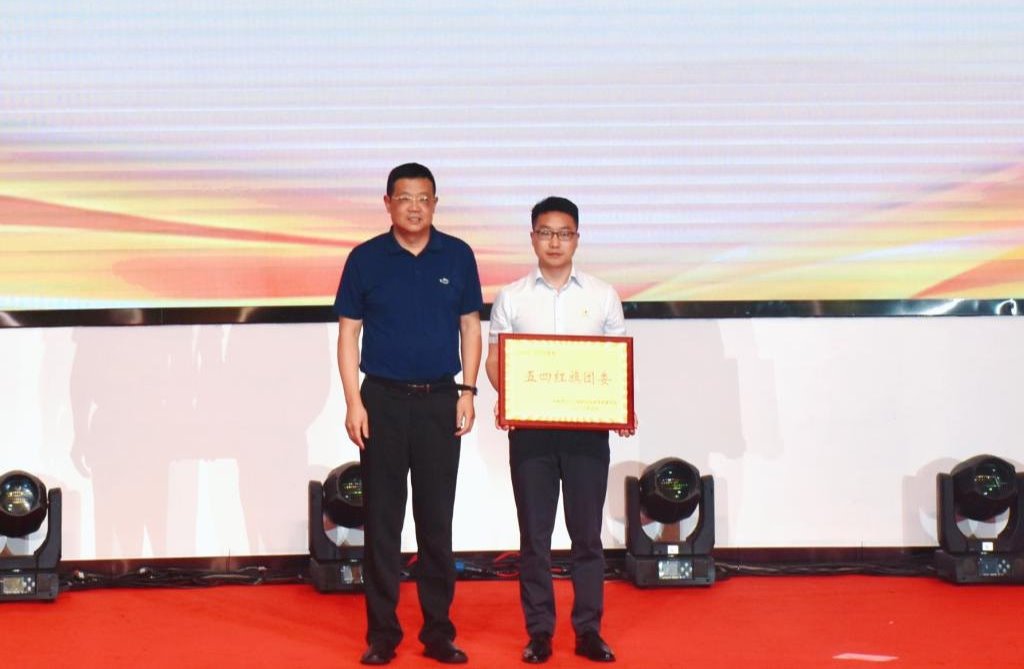 与会领导为2022—2023学年学校共青团工作先进集体和优秀个人代表进行颁奖。