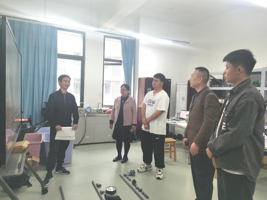 汪卫东参观了智慧水利虚拟仿真实训室、水文化VR/MR实训室、水文与水质分析实训室等,并对国赛项目智能节水系统设计与安装项目进行了指导。(审稿人:徐茂林)