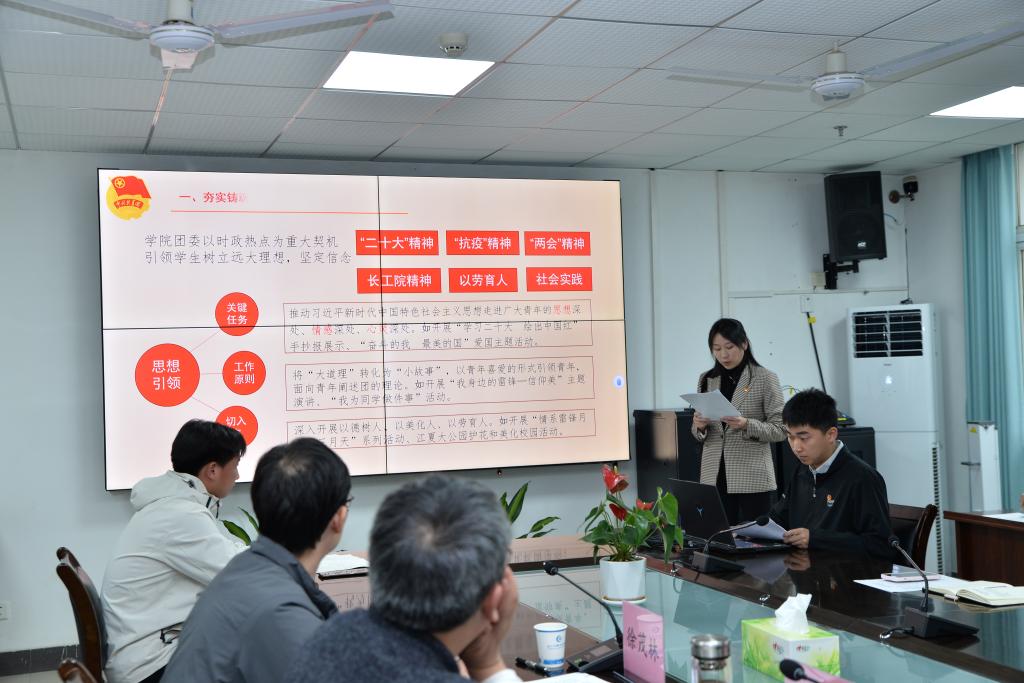 各院系团委、学生会、青年志愿者协会分别从思想引领,团学改革、校园文化、志愿服务、社会实践、特色活动等方面进行了汇报。此次评选通过自评自查、党政评议、互学互评、青年评议、重点工作考核等五项环节进行。