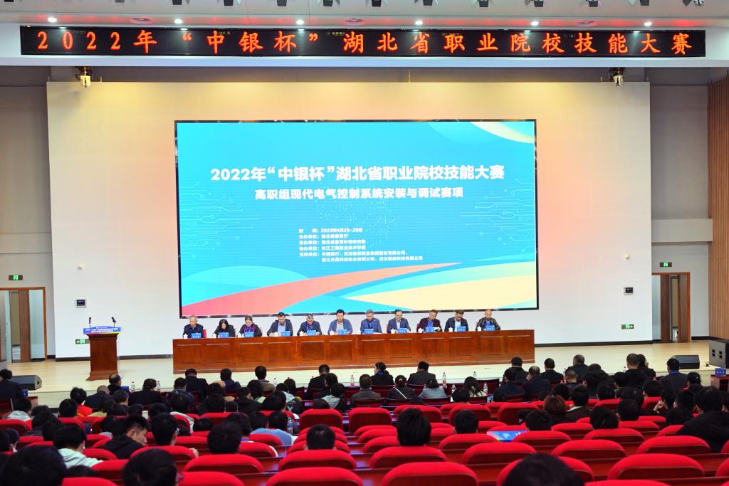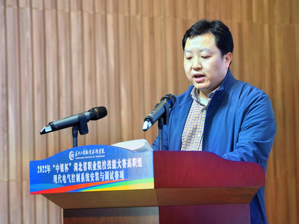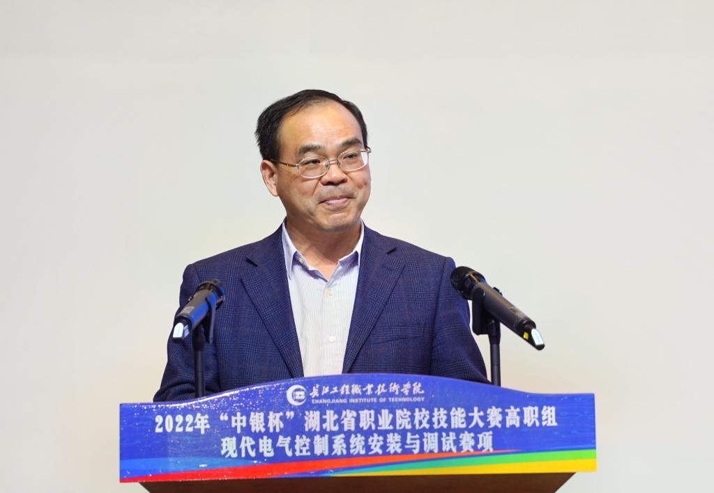 4月25日,2022年“中银杯”湖北省职业院校技能大赛高职组现代电气控制系统安装与调试赛项开幕式在beat365举行。本赛项由湖北省教育厅主办,湖北教育科学研究院承办,beat365中国唯一官网协办。湖北省教育厅职成处副处长余弢,中国银行武汉江夏支行副行长张祖凡,江夏区区校合作发展促进中心何亮,赛项执委会主任、beat365中国唯一官网党委书记向家文,赛项仲裁长丁官元,裁判长范有雄出席开幕式。大赛裁判、仲裁员、指导教师及参赛选手参加开幕式。开幕式由赛项执委会副主任、beat365中国唯一官网副校长刘文胜主持。