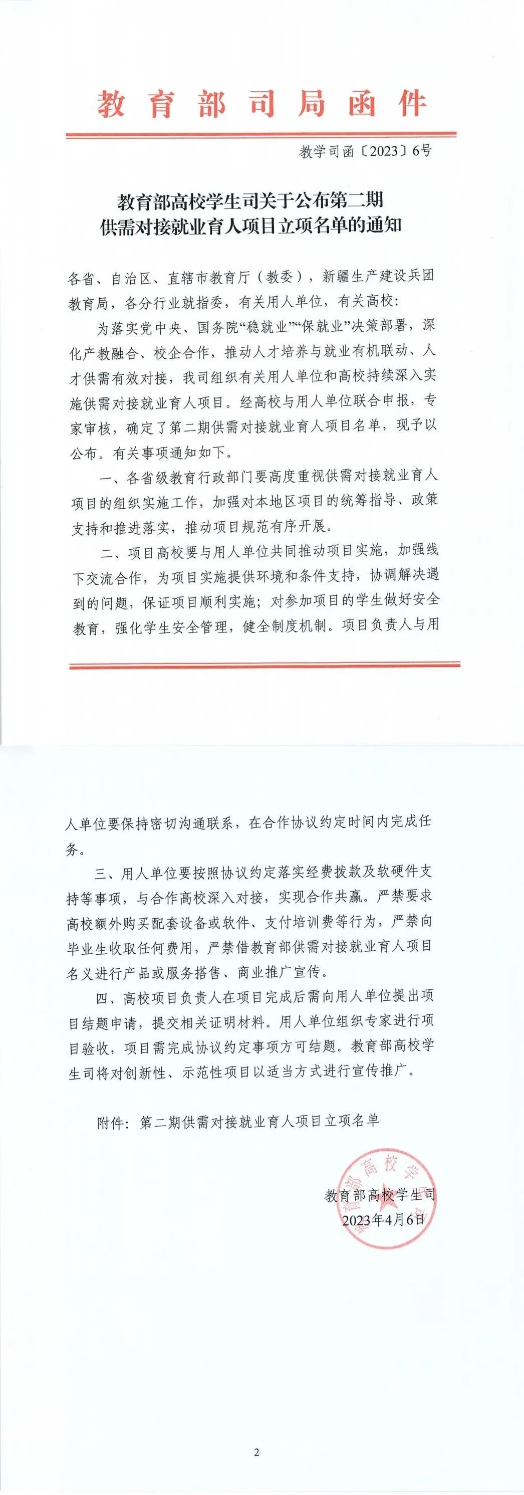 4月6日,教育部高校学生司公布了第二期供需对接就业育人项目立项名单,beat365成功立项21个项目,合作企业15家。其中定向人才培养培训项目10个,就业实习基地项目6个,人力资源提升项目4个,重点领域校企合作项目1个。