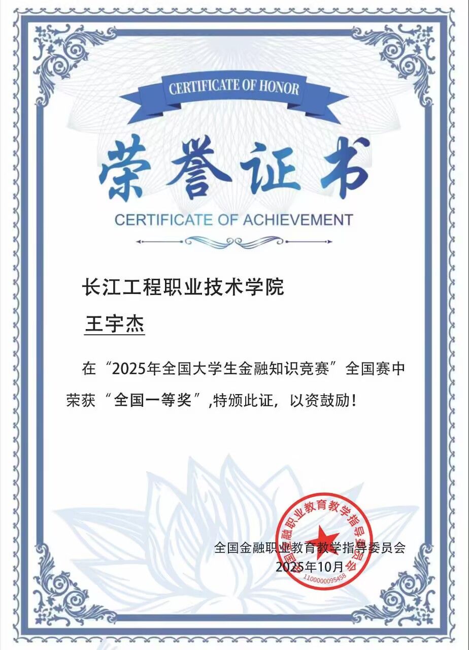 作为水生态修复技术专业的学生,此次获奖不仅展现了王宇杰个人勤奋钻研、勇于挑战的精神风貌,更彰显了学校跨学科人才培养模式的显著成效,水利水电学院也将持续强化学生综合素养培育,鼓励学生突破专业边界、拓宽知识视野,为行业及社会输送更多“专业扎实、素养全面”的高素质技术技能人才,助力金融强国与水利高质量发展建设。