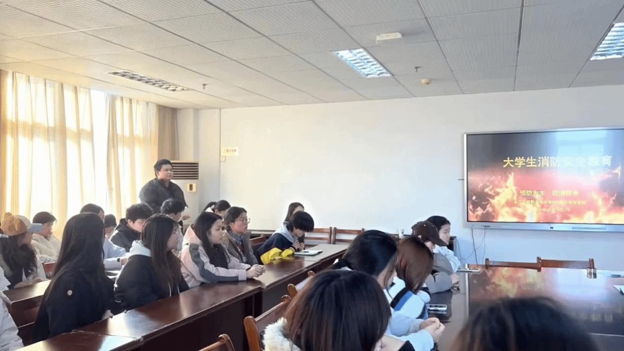 会上全体人员共同观看了消防安全警示片。片中的真实火灾案例及其造成的严重后果,直观揭示了火灾对生命财产的严重威胁,强化了师生的安全防范意识。随后,刘建发结合PPT,系统讲解了消防基础知识、常见消防器材的正确使用方法以及火场关键逃生技巧。 在自由讨论环节,师生们围绕校园及宿舍中可能存在的消防安全隐患展开了交流。大家踊跃发言,指出了如楼道抽烟、违规使用电器、疏散通道堵塞等问题,并共同探讨了整改和防范措施。