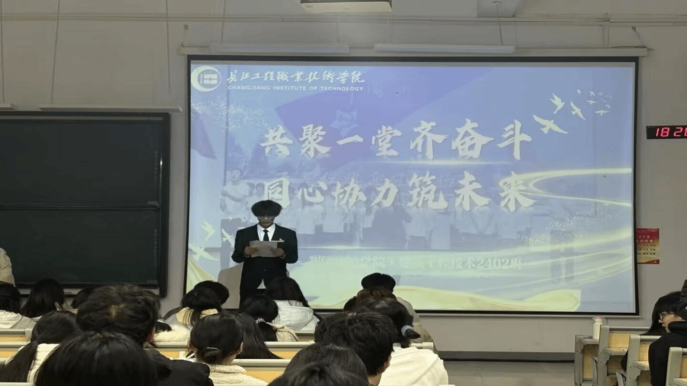 评选坚持公平、公正、公开的原则,各候选班级代表依次上台进行展示。代表们从学风建设、班级活动、学科竞赛、志愿服务等多方面,充分展现了班级的团结风貌与优秀成果。评委结合班级日常表现与现场展示情况进行综合打分,现场气氛热烈、秩序井然。