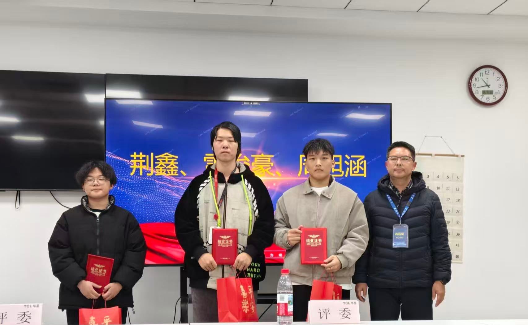 12月17日,武汉华星光电2026届现场工程师班第一阶段成长答辩会顺利举行,机电工程学院副院长肖青、骨干教师周海波与龙俊受邀参加,与企业导师共同组成评审团,全程参与学员答辩与成果评定。