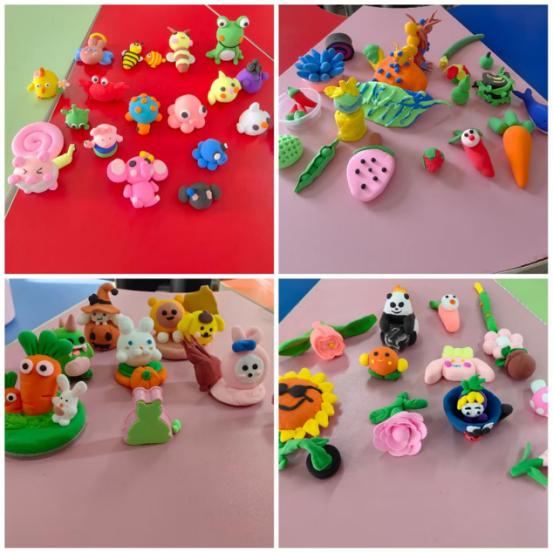 参加活动的学生8人一组,分成四个小组。每个小组任选一个主题,植物、食物、动物等,围绕主题自主创作并使用超轻黏土捏制成型。活动中,学生伴着舒缓放松的音乐,在老师的指导下,逐步了解揉捏造的方法和技巧后,充分发挥出自己的想象力,通过一步步的揉、搓、捏、贴等动作,将一个个或可爱、或奇异的造型呈现出来,用小小的超轻粘土塑造出自己的内心世界。