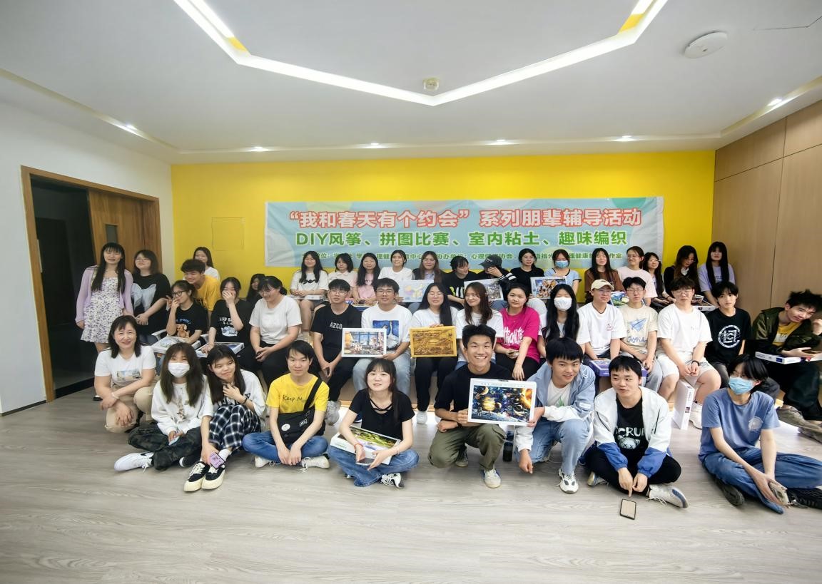 “我和春天有个约会”系列团体活动是学校第十三届5·25学生心理健康教育月系列活动之一,心理健康教育走进学生社区,通过朋辈辅导活动让同学们能够释放压力,感受合作与互助的力量。趣味拼图活动考验了同学们的耐心,也增强了同学之间的友谊,锻炼了合作与沟通能力。(审稿人:杨艳)