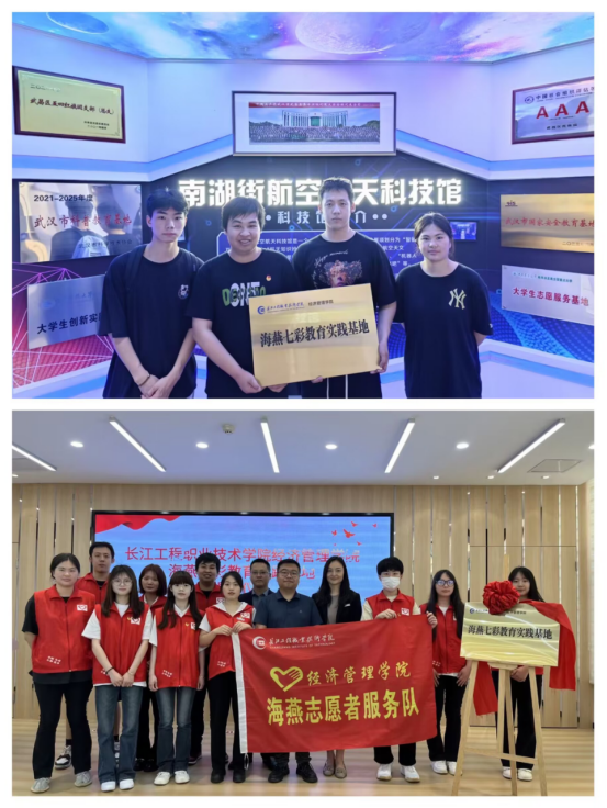 近日,团中央示范团队海燕志愿服务队与武昌区南湖航空航天科技馆举行合作揭幕仪式。校团委书记杜捷涌、经济管理学院党总支书记贾书媛、学生党支部书记张燕、学生党支部纪检委员程天龙、“海燕”志愿服务队学生代表参与了此次活动。