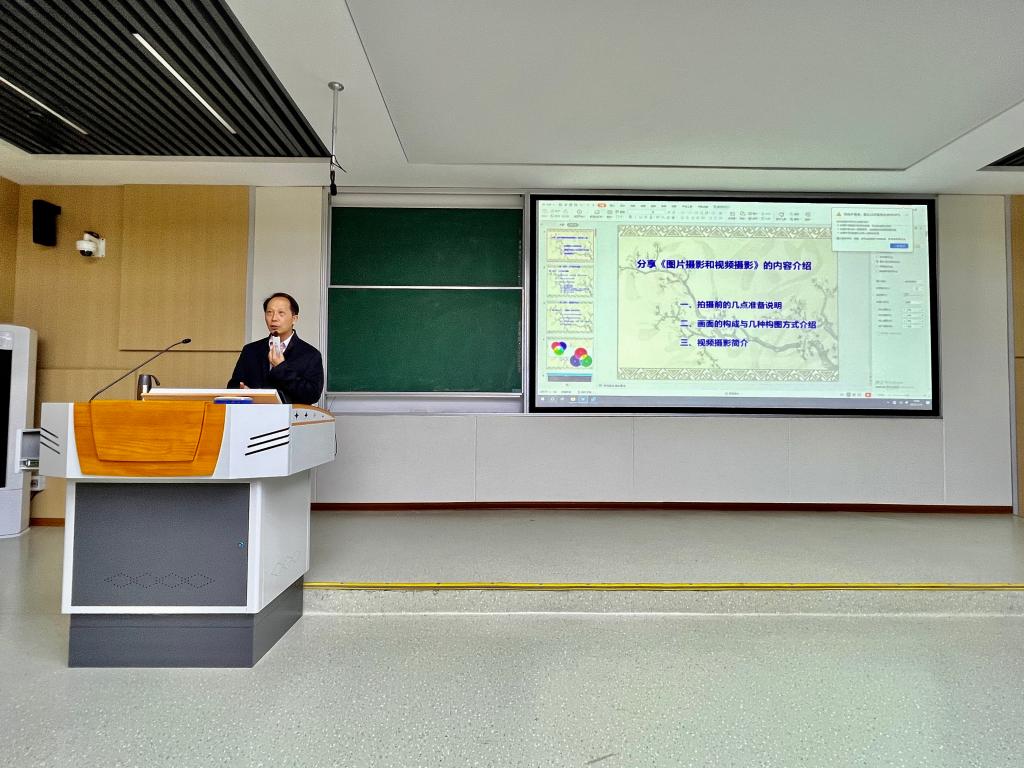 彭志伟借“白平衡的调节”、“聚焦与变焦的调节”、“光圈的调节”、“镜头的推拉摇移”这四个部分内容系统阐述了摄像的要点。他鼓励同学们刻苦钻研,努力提高自身拍摄水平。