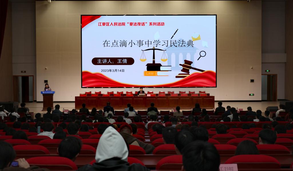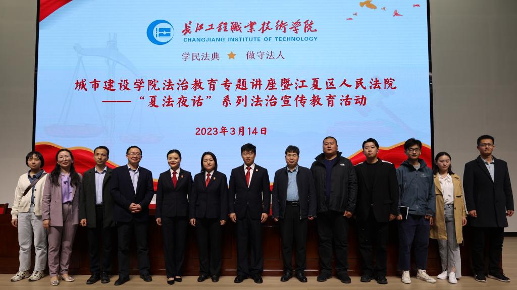 为进一步增强学生的法治意识,加强和谐平安校园建设,3月14日晚上,城市建设学院联合江夏区人民法院民一庭在学校西江楼问渠厅举办了“夏法夜话”系列法治宣传教育讲座,本次讲座邀请江夏区人民法院二级法官王倩主讲。保卫处、学生工作处相关负责人及城市建设学院师生代表参加了此次讲座。
