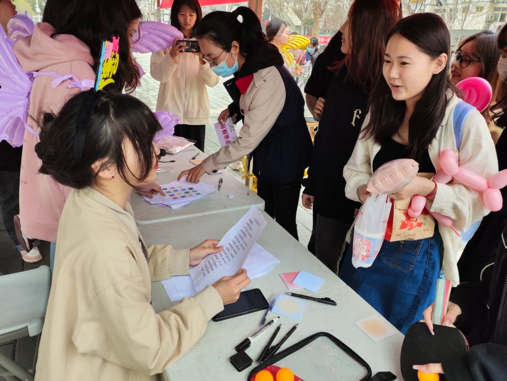 活动就吸引了大量师生来到现场,在工作人员的引导下,大家都有秩序的排队抽签参与到各类游戏当中,并领取对应的礼物。