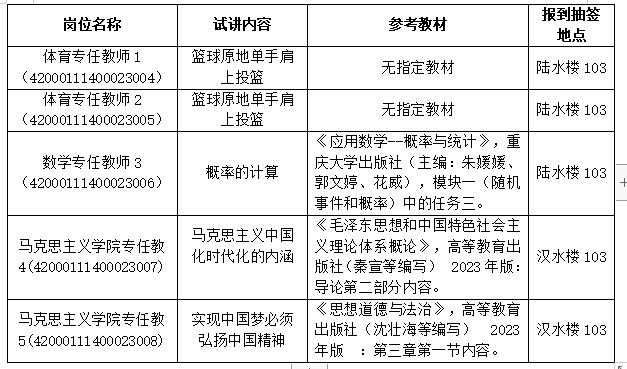 (一)考核方式:试讲。试讲采用多媒体教学方式,自行准备课件ppt(课件不得含有本人姓名、毕业学校及家庭情况等个人信息),时间不超过15分钟,主要考察考生专业能力和讲课水平。