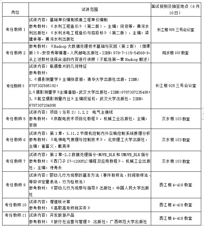 面试报到抽签时间:6月10日,8:30,逾期不来者视为自动放弃。报到抽签地点见下表。