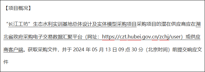 3、项目名称:“长江工坊”生态水利实训基地总体设计及实体模型采购项目